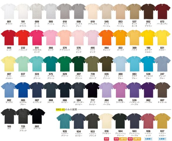 United Athleの代表格として人気のシリーズ。業界最多数級のカラーやキッズサイズ・ガールズサイズといった、バリエーションの豊富さはオリジナルTシャツ作成用のベースとして最適です。