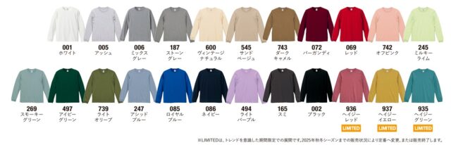 ロングスリーブタイプ(袖口リブ仕様)。