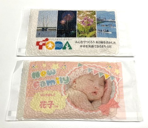 | 商品コンセプト | おいしさそのまま!真空パックのお米です! (1合パック、2合パック等) 表面にフルカラーでオリジナル印刷が可能です! 広い面積にフルカラー表現可能なところが魅力的な景品です! 催事配布用として、 お年賀、記念品・販売促進用としてはもちろん、 防災備蓄関連のノベルティとしても採用が増えております! |