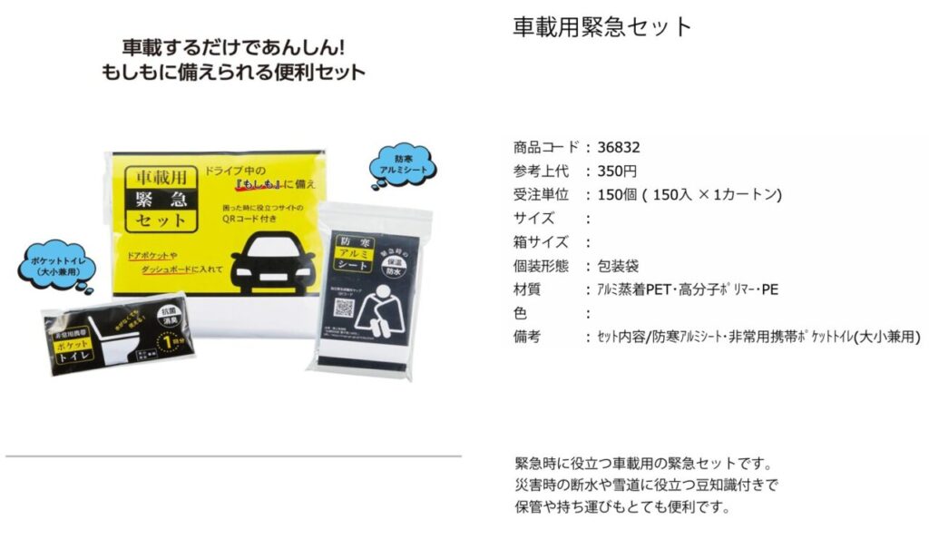 緊急時に役立つ車載用の緊急セットです。