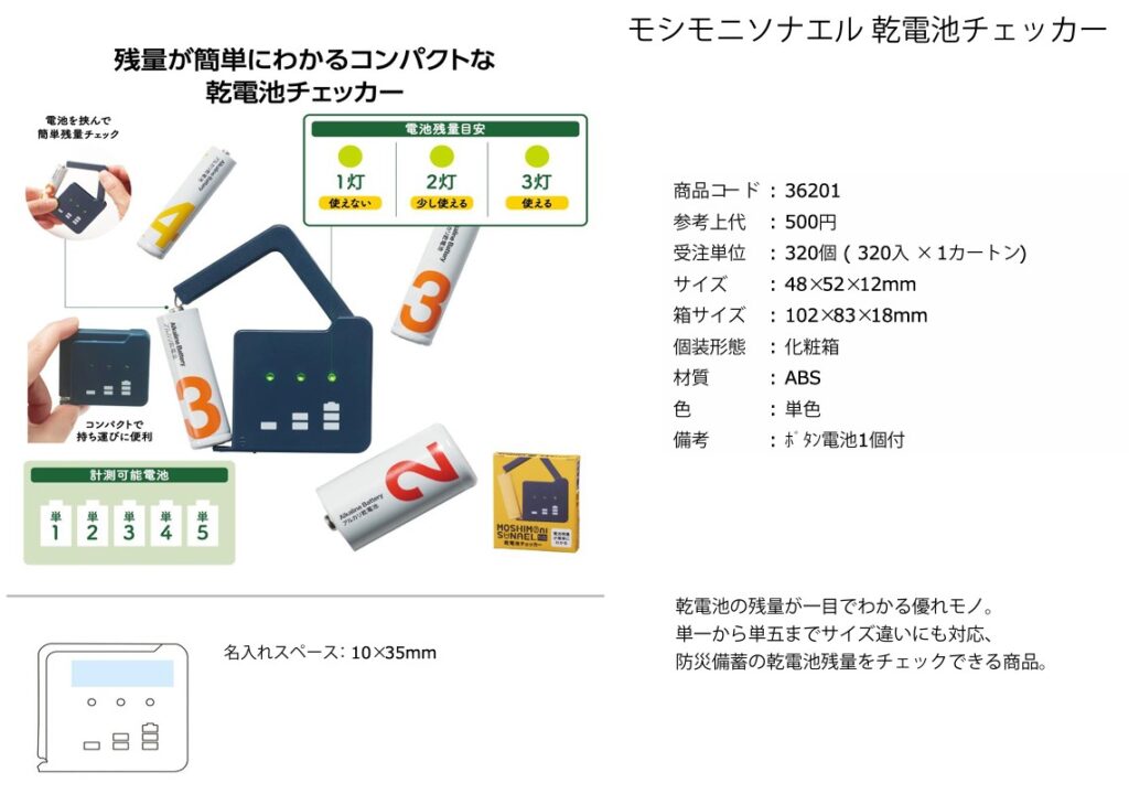 防災備蓄の乾電池材料をチェックできる商品。